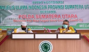 Rapat Koordinasi Polda Sumut bersama dengan MUI Sumut ini dilaksanakan bersama-sama guna melakukan penanganan pencegahan penyebaran virus corona (Covid-19) dan melindungi masyarakat Sumut agar tidak terpapar virus.