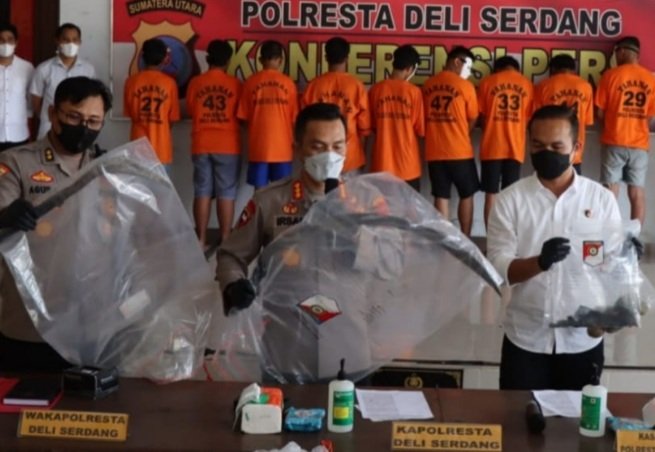 Deli Serdang, POL | Aksi brutal anak-anak genk motor yang meresahkan di Deli Serdang beberapa waktu lalu dipaparkan Kapolresta Deli Serdang, Kombes Pol Irsan Sinuhaji di Mapolresta Deli Serdang, Senin (30/5/2022).