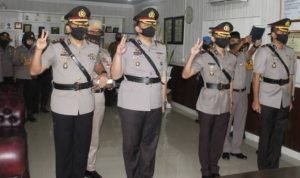 Medan, POL | Kapolrestabes Medan, Kombes Pol Riko Sunarko, memimpin upacara serah terima jabatan (sertijab-red) Kasat Reskrim, Narkoba, Kapolsek Medan Baru, dan Percut Seituan.
