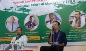 “Kami mendukung PTPN II untuk menyelesaikan permasalahan tanpa menimbulkan masalah,” terangnya, dalam sebuah diskusi publik yang digelar GMKI menghadirkan narasumber pengamat hukum Ranto Sibarani.