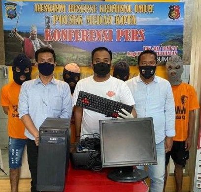 Turut ditangkap juga seorang penadahnya. Adapun identitas para pelaku yakni RA (19) warga Jalan Brigjen Hamid Gang Manggis, AF (18) warga Jalan Brigjen Katamso Gang Intan dan FK (18) warga Jalan Brigjen Katamso Gang Mesjid.