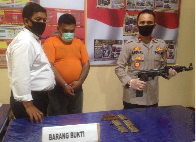 Usai membekuk tersangka S alias N, dikatakan Afdhal pihaknya lalu melakukan penggeledahan di kamar tersangka dan menemukan sepucuk senpi laras panjang lengkap dengan amunisinya.