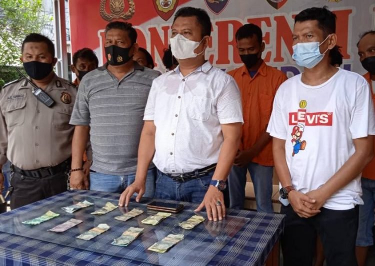 9.Bobi Cahyadi Alexander Purba alias B (24) warga Jalan Gabus dengan barang bukti uang Rp 5000.