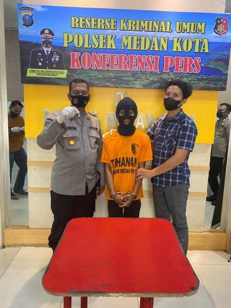 Kapolsek Medan Kota, Kompol Rikki Ramadhan, SIK, melalui kanit Reskrim, Iptu Nova mengatakan kepada sejumlah wartawan kronologis penangkapan tersangaka, Sabtu (17/7/2021).