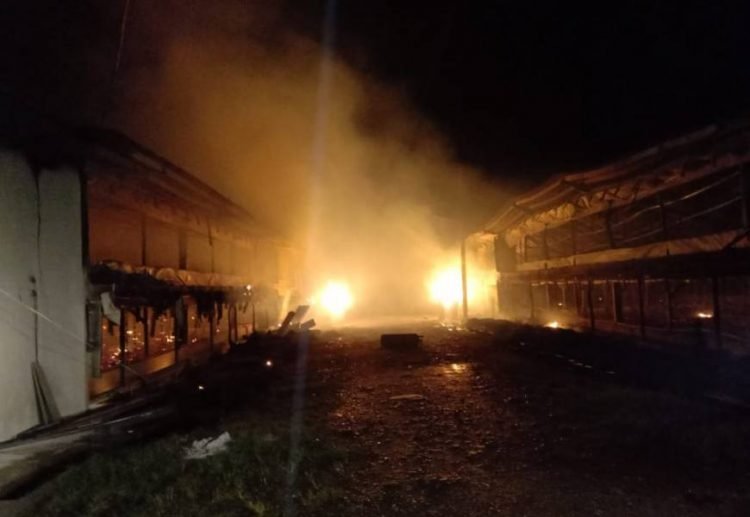 Medan, POL | Kandang ayam potong milik PT Leong Ayam Satu Primadona di Dusun VII Sedarih, Desa Gunung Rintih, Kecamatan STM Hilir, Kabupaten Deli Serdang, terbakar, Kamis (26/11/2020).