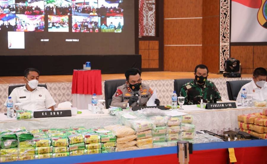 Kapolda Sumut, Irjen Pol RZ Panca Putra Simanjuntak, mengatakan selama dua bulan Tim Dit res Narkoba Polda Sumut bersama Polres Jajaran berhasil mengungkap 35 kasus dengan mengamankan barang bukti sabu seberat 412, 96 kg, pil ekstasi sebanyak 54,614 butir dan ganja 674 kg.