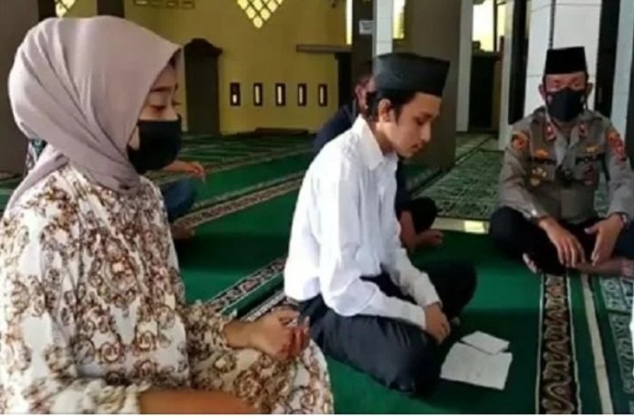 Medan, POL | Suasana haru terlihat di Masjid yang berada sebelah Polsek Medan Timur. Adapun Ardiansyah (19), tahanan kasus begal di Polsek Medan Timur sah menikahi sang pujaan hatinya, Tiara Asiyah (19), Jumat (5/11/2021) pagi.