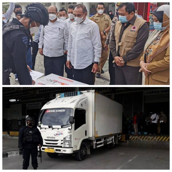 Dalam perjalanan vaksin COVID-19 dari bandara terlebih dahulu menuju Posko Covid-19 Pemprovsu dan langsung di terima oleh Gubernur Sumatera Utara H.Edy Rahmayadi.
