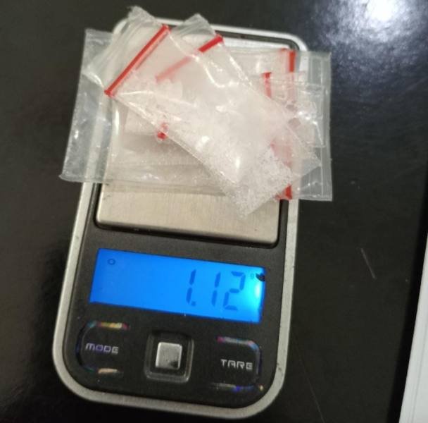 Barang bukti meliputi lima buah plastik klip kecil diduga berisi sabu dengan total berat 1.12 gram dan empat buah plastik klip kecil lainnya yang ditawarkan dengan harga paket Rp.100.000. Selain itu, sebuah plastik klip kecil berisi sabu dijual seharga Rp.50.000, beserta satu buah sekop dari pipet plastik.
