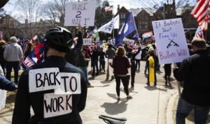 Dalam beberapa hari ini di sejumlah kota AS, marak aksi-aksi demo menentang kebijakan lockdown yang diterapkan sejumlah negara bagian AS. Dalam aksi demo tersebut, sebagian demonstran membawa senjata api dan terang-terangan menunjukkannya.