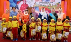 Medan, POL | Sebanyak 1.000 anak-anak siswa Pendidikan Anak Usia Dini (PAUD) memenuhi Aula Madinatul Hujjaj Asrama Haji, Jalan Jenderal Besar AH Nasution, Pangkalan Masyhur Medan, Senin (16/12/2019). Mengenakan ragam kostum unik dan pakaian tradisional, mereka berkumpul untuk menghadiri Gebyar PAUD Tingkat Provinsi Sumatera Utara (Sumut) 2019.