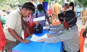 Medan, POL | Sebanyak 111 warga terjaring razia masker yang digelar di depan Terminal Amplas Jalan Panglima Denai Kelurahan Timbang Deli Kecamatan Medan Amplas, Senin (24/8). Razia ini digelar guna menegakkan Peraturan Wali Kota (Perwal) Medan Nomor 27 Tahun 2020 tentang Pelaksanaan Adaptasi Kebiasaan Baru pada Kondisi Pandemi Corona Virus Disease 2019 (Covid-19) di Kota Medan serta Peraturan Gubernur (Pergub) Pemprov Sumut Nomor 34 Tahun 2020 tentang Peningkatan Disiplin dan Penegakan Hukum Protokol Kesehatan Dalam Pencegahan dan Pengendalian Covid-19 di Provinsi Sumatera Utara.