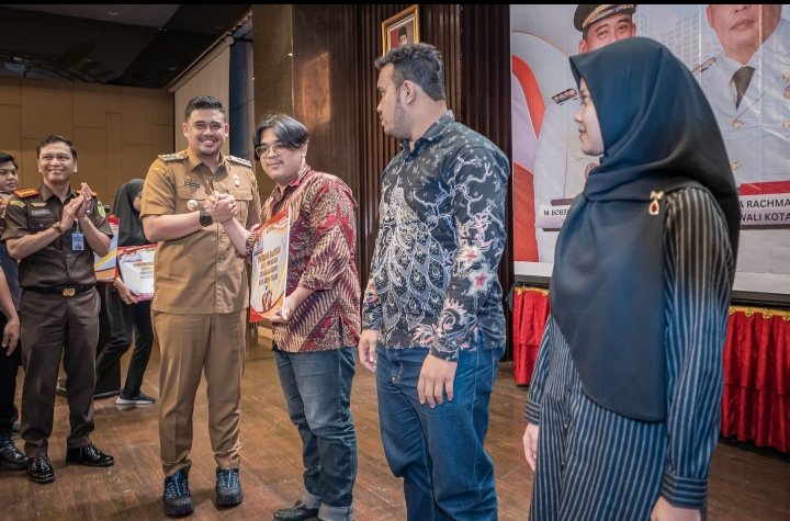 Suasana ini tergambar saat Wali Kota Medan Bobby Nasution menyerahkan Bantuan Biaya Pendidikan Bagi Mahasiswa Kota Medan di Hotel Grand Mercure Medan, Selasa (20/6/2023). Pemberian bantuan ini dilakukan sebagai wujud perhatian Pemko Medan guna mengatasi ketidakpastian pendidikan bagi para mahasiswa yang terkendala dalam persoalan pembiayaan.