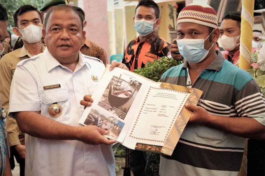 Pada kesempatan itu Bupati juga menyerah bantuan sarana dan prasarana nelayan kepada lima kelompok nelayan Langkat.