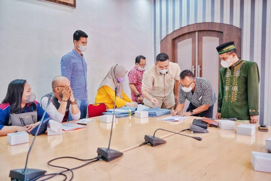 Medan, POL | Pemko Medan melalui Dinas Perhubungan Kota Medan melakukan penandatanganan kerjasama dengan pihak ketiga dalam rangka pengelolaan pengutipan pendapatan parkir melalui sistem E-Parking di Kantor Dinas Perhubungan (Dishub) Kota Medan, Jalan Pinang Baris Medan, Jumat (11/2/2022). Diharapkan, pihak ketiga yang telah terpilih dapat menjalankan tugas dengan baik sehingga berdampak terhadap peningkatan pendapatan asli daerah (PAD) Kota Medan.