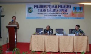 Pelatihan ini dibuka Wali Kota Medan Drs H T Dzulmi Eldin S MSi MH diwakili Kepala Badan Kepegawaian Daerah & Pengembangan Sumber Daya Manusia (BKD&PSDM) Kota Medan Muslim Harahap. Diingatkan Muslim, mau tidak mau para PPTK sebagai aparatur di tingkat kelurahan akan berhadapan dengan kegiatan pengadaan barang jasa pemerintah untuk menyelenggarakan pembangunan sarana dan prasaran di kelurahan sebagai mana amanat dari Permendagri tersebut.