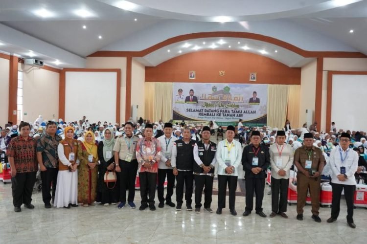 “Bapak dan ibu meninggalkan tanah air selama 40 hari untuk melaksanakan ibadah haji di tanah suci, menunaikan rukun dan wajib haji dengan penuh perjuangan, semoga segala amal dan ibadah yang dilaskanakan diterima Allah SWT dan meraih predikat haji mabrur,” ungkapnya.