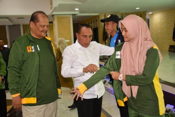 “Untuk membawa nama Sumatera Utara yang harum, kalian harus berprestasi. Itu yang prioritas,” ujar Gubernur Sumut Edy Rahmayadi saat melepas keberangkatan para atlet Bapomi Sumut ke Jakarta, Senin (16/9), di Aula Raja Inal Siregar, Lantai 2, Kantor Gubernur Sumut, Jalan Pangeran Diponegoro, Nomor 30 Medan.