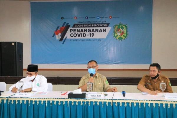 Pertemuan yang dipimpin Pelaksana Tugas (Plt) Wali Kota Medan Ir H Akhyar Nasution Msi didampingi Kepala Badan Kesbangpol Kota Medan Sulaiman Harahap dan Ketua MUI Kota Medan Prof Dr H M Hatta berlangsung dengan menerapkan protokol kesehatan yakni pemeriksaan suhu tubuh, mencuci tangan menggunakan sabun sebelum memasuki ruangan, menggunakan masker dan menjaga jarak satu sama lain.
