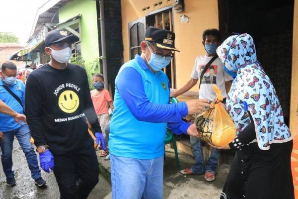 Ungkapan terima kasih dan apresiasi tersebut disampaikan Akhyar saat membagikan langsung 200 paket bahan pokok kepada warga yang berada di Jalan Brigjen Zein Hamid Gang Sado Ujung Lingkungan 8, Lingkungan 9 dan Lingkungan 10 Kelurahan Titi Kuning Kecamatan Medan Johor, Minggu (10/5/2020) pagi.