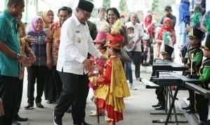Medan, POL | Atraksi drum band cilik dan barisan anak-anak mengenakan aneka pakaian adat menyambut kedatangan Pelaksana tugas (Plt) Wali Kota Medan Ir H Akhyar Nasution MSi  menghadiri Hari Anak Nasional Kota Medan 2019 di Asrama Haji Jalan AH Nasution Medan, Kamis (28/11/2019). Melalui acara ini, anak-anak diharapkan tumbuh  sehat, kreatif serta berakhlak mulia se hingga berguna bagi bangsa dan negara, khususnya dalam mengisi pembangunan di Kota Medan.