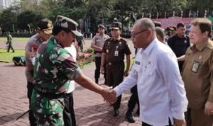 Medan, POL | Pelaksana tugas (Plt) Wali Kota Medan Ir H Akhyar Nasution MSi mengikuti Apel Gelar Pasukan Operasi Lilin Toba 2019 dalam rangka pengamanan natal 2019 dan tahun 2020 di wilayah Sumatera Utara di Lapangan Benteng, Kamis (19/12/2019).