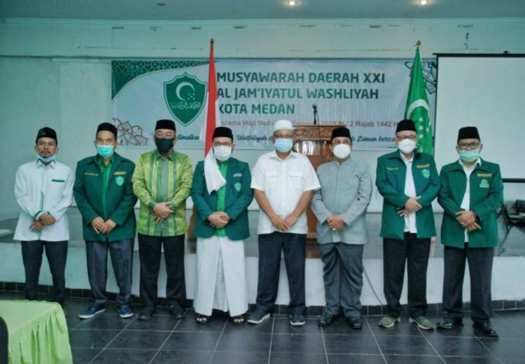 Medan, POL | Wali Kota Medan Ir H Akhyar Nasution MSi menghadiri Musyawarah Daerah (Musda) XXI Al Jam’iyatul Washliyah Kota Medan Tahun 2021 di Asrama Haji Medan Jalan Jenderal Besar A H Nasution Kelurahan Pangkalan Masyhur Kecamatan Medan Johor, Minggu (14/02/2021). Dengan adanya Musda ini, Akhyar berharap Dewan Pimpinan (DPD) Al Jam’iyatul Washliyah Kota Medan dapat terus memberikan dan meningkatkan kontribusinya untuk pembangunan Kota Medan kedepannya, khususnya dalam Bidang Pendidikan dan Dakwah.