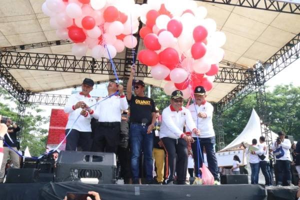 Medan, POL | Wakil Wali Kota Medan Ir H Akhyar Nasution MSi mengahdiri Deklarasi Milenial Anti Narkoba di Lapangan benteng Medan, Minggu (24/3). Acara yang dihadiri belasan ribu pengunjung, terutama kaum milenial ini ditandai pelepasan jalan santai serta pertunjukan grup band rock ternama Indonesia, Slank. Melalui acara ini diharapkan kaum milenial menjauhi dan memerangi narkotika, obat terlarang dan zat adiktif (narkoba).