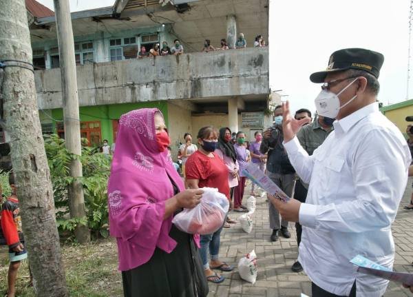 Sebelum melihat kondisi warga yang berada di kampung KB, Akhyar terlebih dahulu menyerahkan bantuan berupa bahan pokok kepada kampung KB. Kemudian didampingi Kepala Dinas PP&KB Kota Medan Drg Usma Polita, Kabag Humas Arrahman Pane, dan Camat Medan Amplas Edi Mulia Matondang, Akhyar melihat langsung kondisi warga kampung KB yang sudah memiliki kesadaran untuk menggunakan masker.
