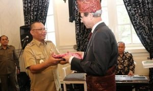 Usai menyampaikan sambutan selamat datangnya, Akhyar kemudian memasangkan tengkuluk dan kain songket kepada Dubes Swiss H E Mister Kurt Kunz sebagai bentuk penghormatan dari Pemko Medan. Dan dilanjutkan dengan saling bertukar cenderamata serta foto bersama.