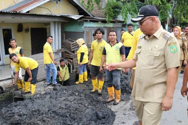 Medan, POL | Mengenakan setelan Pakaian Dinas Harian (PDH) berwarna Khaki dan sepatu boot,  Pelaksana Tugas (Plt) Wali Kota Medan Ir. H. Akhyar Nasution, M.Si memimpin pelaksanaan normalisasi parit disekitar Jalan Letda Sudjono Medan, Senin (2/12/2019). Puluhan personil dari Dinas Pekerjaan Umum (PU)  bekerja mengembalikan fungsi parit  sebagai drainase.