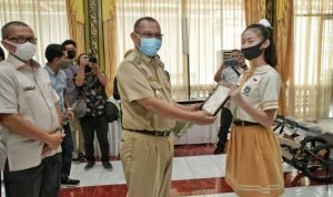 Medan, (POL | Dengan penuh rasa gembira dan bangga, Pelaksana tugas (Plt) Wali Kota Medan Ir H Akhyar Nasution MSi menyerahkan hadiah pemenang Lomba Video Pidato Bung Karno di Pendopo Rumah Dinas Wali Kota, Jalan Sudirman Medan, Selasa (9/6/2020). Lomba yang diikuti pelajar tingkat SD dan SMP sejak 15 Mei hingga 1 Juni dalam bentuk video ini digelar dalam rangka memperingati Hari Lahirnya Pancasila sekaligus menanamkan dan menumbuhkan rasa nasionalisme juga patriotisme.