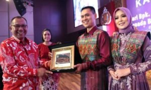Medan, POL | Pelaksana tugas (Plt) Wali Kota Medan Ir H Akhyar Nasution MSi memberikan cindera mata sebagai bentuk apresiasi dan ungkapan rasa terima kasih kepada Brigjen Pol Dadang Hartanto SH SIK MSi, atas sinergitas dan dukungan yang telah diberikan selama menjabat sebagai Kapolrestabes Medan sehingga ibukota Provinsi Sumatera Utara senantiasa aman dan kondusif. Kemudian memakaikan tongkulok (topi khas Melayu) dan songket kepada Kombes Pol Johnny Edison Isir SIK MTCP sebagai ungkapan selamat dan dan bertugas di Kota Medan sebagai Kapolrestabes Medan.