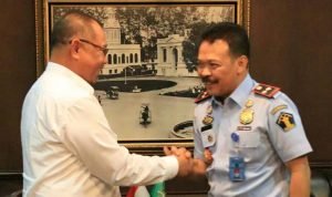 Medan, POL | Pelaksana tugas (Plt) Wali Kota Medan Ir H Akhyar Nasution MSi menerima kunjungan Kepala Kantor Imigrasi Kelas I Khusus Tempat Pemeriksaan Imigrasi (TPI) Medan Supartono SH MH dan Kepala Imigrasi Kelas I TPI Polonia Samuel Toba di Balai Kota Medan, Kamis (6/2). Selain bersilaturahmi dan memperkenalkan diri, keduanya juga sangat mengharapkan dukungan sehingga mereka dapat memberikan layanan keimigrasian dengan sebaik-baiknya sehingga memuaskan masyarakat.