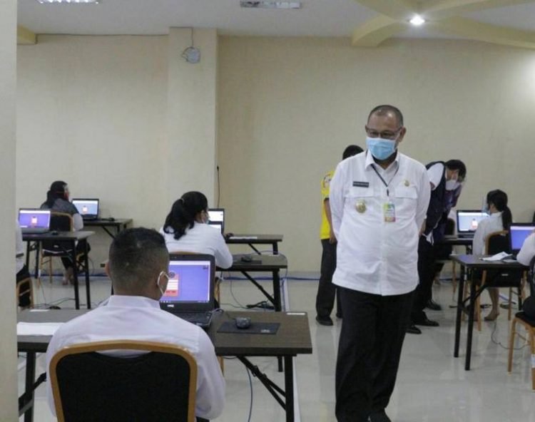 Medan, POL | Pelaksana tugas (Plt) Wali Kota Medan Ir H Akhyar Nasution MSi meninjau pelaksanaan ujian Seleksi Kompetensi Bidang (SKB) CPNS di Kantor Regional (Kanreg) VI Badan Kepegawaian Negara (BKN) Medan, Jalan TB Simatupang, Kecamatan Medan Sunggal, Jumat (11/9/2020). Peninjauan dilakukan untuk mengecek seluruh kesiapan, termasuk penerapan protokol kesehatan di tengah kondisi pandemi Corona Virus Disease 2019 (Covid-19) yang masih melanda.