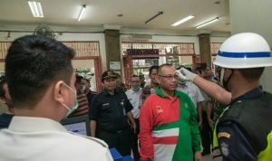 Medan, POL | Guna mengantisipasi penyebaran virus corona (covid-19), Pelaksana tugas (Plt) Wali Kota Medan Ir H Akhyar Nasution Msi meninjau Stasiun Kereta Api Kota Medan Jalan Stasiun Kereta Gg. Buntu, Kecamatan Medan Tim, Sabtu (21/3/2020). Peninjauan ini dilakukan untuk memastikan stasiun kereta api Medan telah menerapkan langkah-langkah pencegahan penyebaran virus corona. Mengingat stasiun kereta api merupakan fasilitas umum yang dikunjungi banyak masyarakat baik yang keluar maupun yang masuk ke Kota Medan.