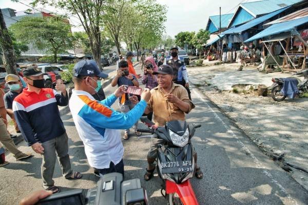 Di tempat itu Akhyar membagi-bagikan masker kepada sejumlah pedagang maupun pengendara sepeda motor yang tidak mengenakan masker. Tidak hanya sekedar membagikan, Akhyar juga memakaikan masker langsung disertai arahan singkat tentang pentingnya penggunaan masker di saat Covid-19 menerpa. Apalagi kawasan Pasar Melati berada di Kecamatan Medan Tuntungan yang masuk zona merah penyebaran virus Corona.