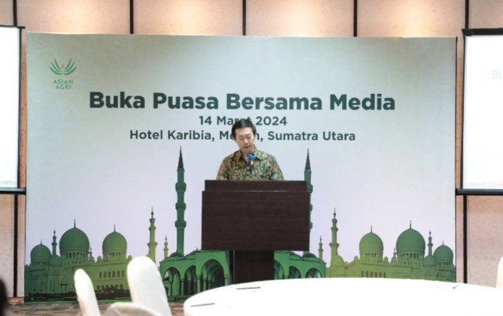 Farianda Putra Sinik, Ketua PWI Sumatra Utara yang memberikan sambutan di acara Buka Puasa Bersama Asian Agri dengan insan pers Sumut mengucapkan terimakasih atas undangan buka puasa Asian Agri bersama media.