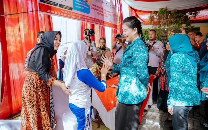 Medan, POL | Ketua TP PKK Kota Medan Kahiyang Ayu M Bobby Afif Nasution mengajak masyarakat, terutama kaum ibu untuk mendukung suksesnya pelaksanaan imunisasi Human Papilomavirus Vaccine (HPV). Sebab, imunisasi ini dilakukan sebagai upaya mencegah sejak dini terjadinya kanker serviks yang disebabkan virus HPV tersebut.