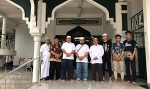 Kedatangan Rusdi Sinuraya disambut hangat oleh ketua BKM Masjid Al Amin, Amin Tanjung yang merupakan keponakan Jenderal TNI Feisal Tanjung, pengurus BKM Khairulsyah berserta jamaah lainnya. (POL/isvan)
