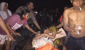 Korban diperkirakan berumur 50 tahun dengan bertubuh gempal. Terlihat wanita yang ada di samping korban histeris.