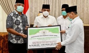 Medan, POL | Badan Wakaf Indonesia (BWI) Sumatera Utara (Sumut) menyalurkan wakaf sebesar Rp50 juta kepada Gugus Tugas Percepatan Penanganan (GTPP) Covid-19 Sumut. BWI berharap wakaf ini bisa membantu tim gugus tugas dalam menangani Covid-19 di Sumut.