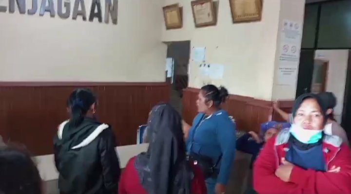 Belasan Ibu-ibu Geruduk Polsek Patumbak Menuntut Pembebasan Dua Pemuda