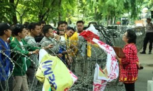 Mereka juga menuntut anggota dewan menerima aspirasi mereka. Namun tak ada satupun anggota dewan yang hadir di gedung DPRD. Karena merasa aspirasi tak tertampung, mahasiswa memaksa untuk masuk ke gedung dewan dan menarik pagar berduri serta membakar ban di depan gedung.