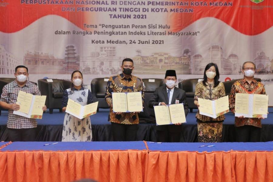 Dalam acara peningkatan Indeks literasi masyarakat di Kota Medan, Perpustakaan Nasional RI juga melakukan MoU dengan Pemko Medan dan Perguruan Tinggi. Penandatanganan MOU Ini dilakukan oleh Kepala Perpustakaan Nasional RI dan Wali Kota Medan serta Rektor Perguruan Tinggi. (POL/COS)