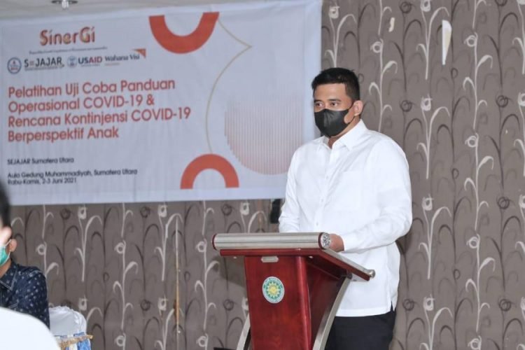 Demikian disampaikan Wali Kota Medan Muhammad Bobby Afif Nasution SE MM ketika membuka Pelatihan Uji Coba Panduan Operasional Covid-19 dan Rencana Kontinjensi Covid-19 berperspektif Anak Di Aula Gedung Muhammadiyah, jalan Sisingamangaraja, Rabu (2/6/2021), dengan peserta Petugas Satgas Covid-19 Kecamatan se- Kota Medan.