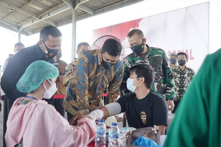 Medan, POL | Wali Kota Medan Bobby Nasution meninjau pelaksanaan serbuan Vaksinasi massal yang digelar AKABRI 1996-Bharatasena di Shelter Lanud Soewondo Medan, Kamis (23/9/2021). Diharapkan kegiatan akan membantu Pemko Medan dalam mensukseskan program vaksinasi sekaligus percepatan terwujudnya herd immunity di Kota Medan.