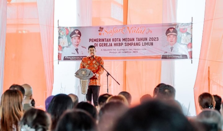 Sebelumnya, Pendeta Santo Marpaung menyampaikan ucapan terima kasih kepada menantu Presiden Joko Widodo ini karena telah memilih HKBP Simpang Limun sebagai salah satu gereja untuk digelarnya Safari Natal Pemko Medan tersebut.
