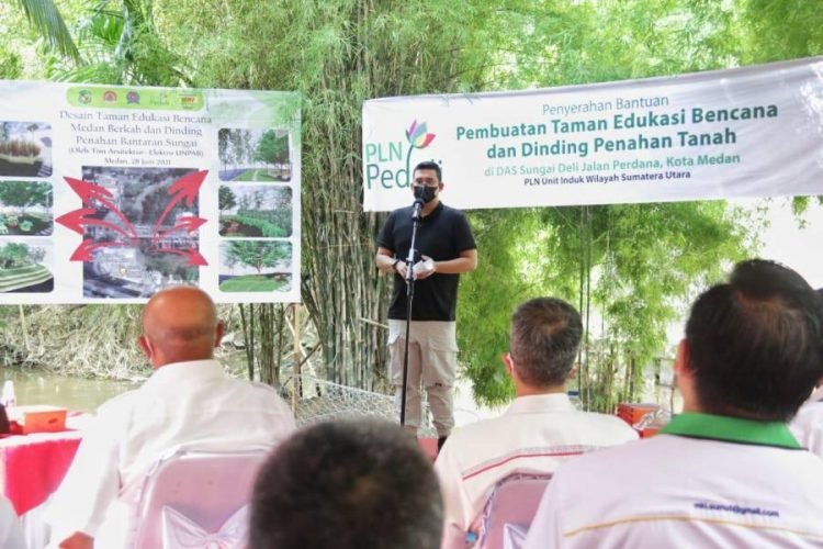 Wali Kota Medan, Bobby Nasution dalam sambutanya menyampaikan ucapan terimakasih kepada PT. PLN yang telah membantu pembangunan taman edukasi bencana dan dinding penahan bantaran di DAS Sungai Deli. Menurut Bobby Nasution ini merupakan wujud dukungan BUMN dalam mensukseskan salah satu program prioritas Pemko Medan yaitu penanganan masalah banjir.