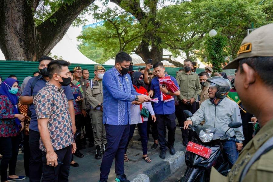 Medan, POL | Semakin bersatu serta menjadi satu kesatuan dalam mewujudkan cita-cita bangsa dan negara menjadi harapan yang disampaikan Wali Kota Medan Bobby Nasution usai membagikan Bendera Merah Putih kepada masyarakat yang melintas di Jalan Balai Kota Medan, Jum’at (5/8/2022).
